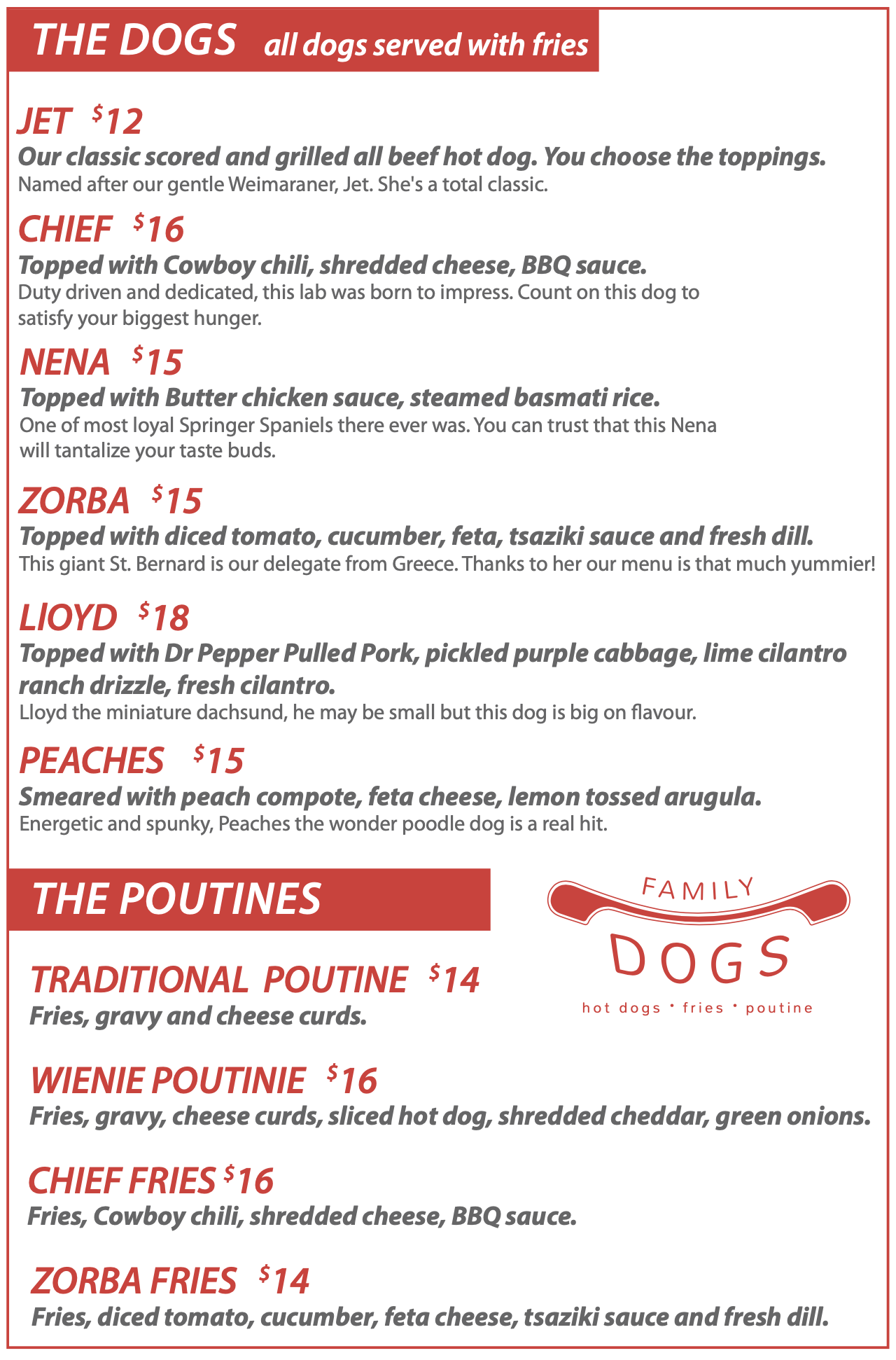And oh yeah, these gourmet hotdogs, french fries, and poutine just so happen to be named after all of our very own four- legged friends!